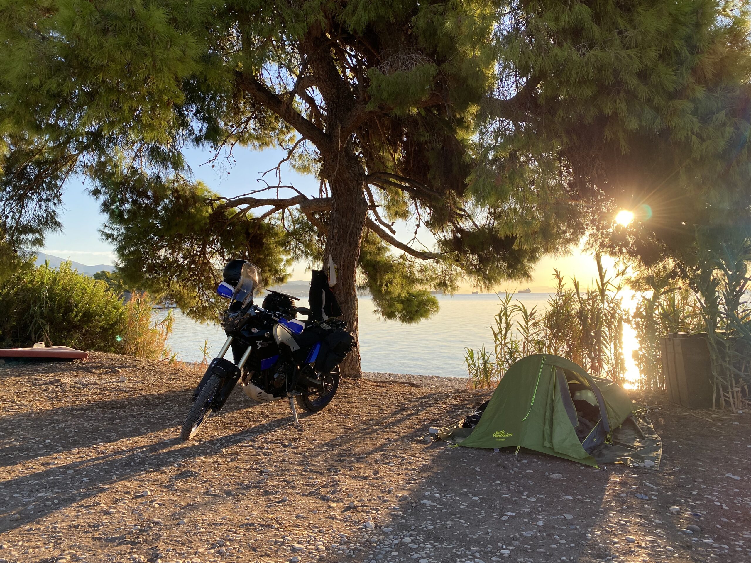 After spending another night at the hostel, I decided to look at the Methoni and Koroni castles in the southwest of the Peloponnese, before starting to head north. The two castles were built in the 13th century by the Venetians and served a strategic role in trade and the defense of their empire. I spent the rest of the day riding across the Peloponnese peninsula, riding northeast through Tripoli and Nafplio before setting up camp on the beach near the Canal of Corinth. While it was a calm and peaceful camp spot, I ran into some friendly people. First I talked to Ioannis, a local history professor and book author who educated me lot on Greek history and architecture. Then, a German couple in a Land Rover arrived and decided to make use of the nice camp spot as well. Kai and Sarah with their dog Vincent had been travelled full-time for three years, covering the entire Panamericana from Alaska to the south of Argentina and were on their way home from Georgia. Initially, didn’t want to go into Athens but they convinced me to do so anyway, which I did the next day.